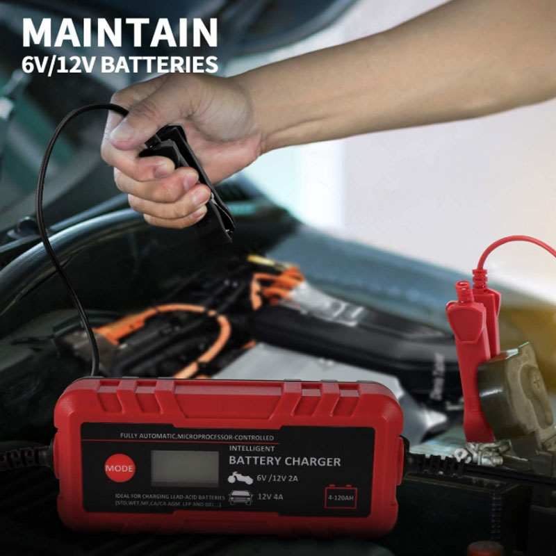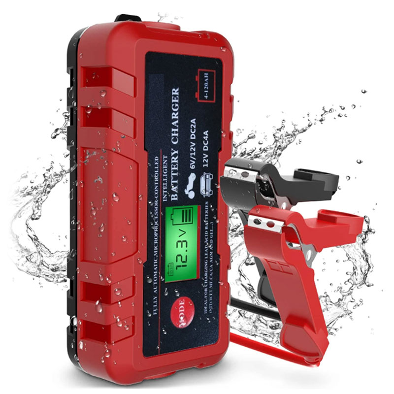 Geavanceerde auto-acculader met LCD-scherm: het LCD-scherm geeft u direct de laadstatus en diagnostische informatie, zelfs in de onderhoudsmodus. Het LCD-scherm geeft de laadspanning en -stroom, de oplaadmodus, het batterijtype en het percentage resterende energie weer.