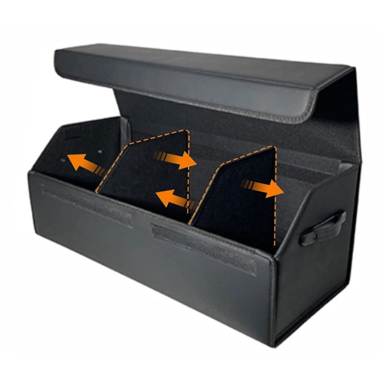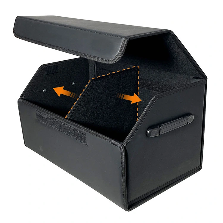 Opvouwbaar: het ruimtebesparende ontwerp klapt in wanneer het niet in gebruik is. Als er geen spullen in de doos zitten, of als je grote spullen in de kofferbak moet plaatsen, kun je de doos opvouwen om ruimte te besparen. Aanpasbare interne compartimenten zijn geschikt voor verschillende opslagbehoeften. Dankzij het uitgeruste handvat is hij verplaatsbaar en kan hij voorwerpen verplaatsen tijdens het kamperen of winkelen.