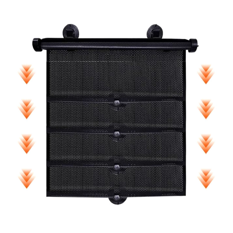Dit intrekbare rolzonnescherm combineert functionaliteit en duurzaamheid voor zonwering in auto's. Het intrekbare ontwerp maakt bediening met één hand mogelijk, kan worden uitgeschoven om ramen te bedekken en kan worden ingetrokken in een slanke behuizing voor opslag. Gemaakt van 210T polyester met een hoge dichtheid en een zilvergecoate UV-blokkerende laag, voorkomt vervaging van het auto-interieur en biedt directe privacy. Het verstelbare spanmechanisme zorgt voor een veilige pasvorm op ramen met een breedte van 30 cm tot 70 cm.