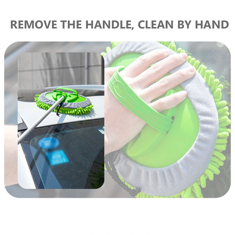 Eenvoudig te demonteren en te vervangen: de goedkope telescopische autowasmop is eenvoudig en gaat lang mee. Het heeft een afneembare groene schoonmaakhoes met een grijze chenille rand en een ingebouwd trekkoord. Dankzij de elastische band kan hij gemakkelijk strakker of losser worden gemaakt, waardoor hij gemakkelijk kan worden aangepast en vervangen.