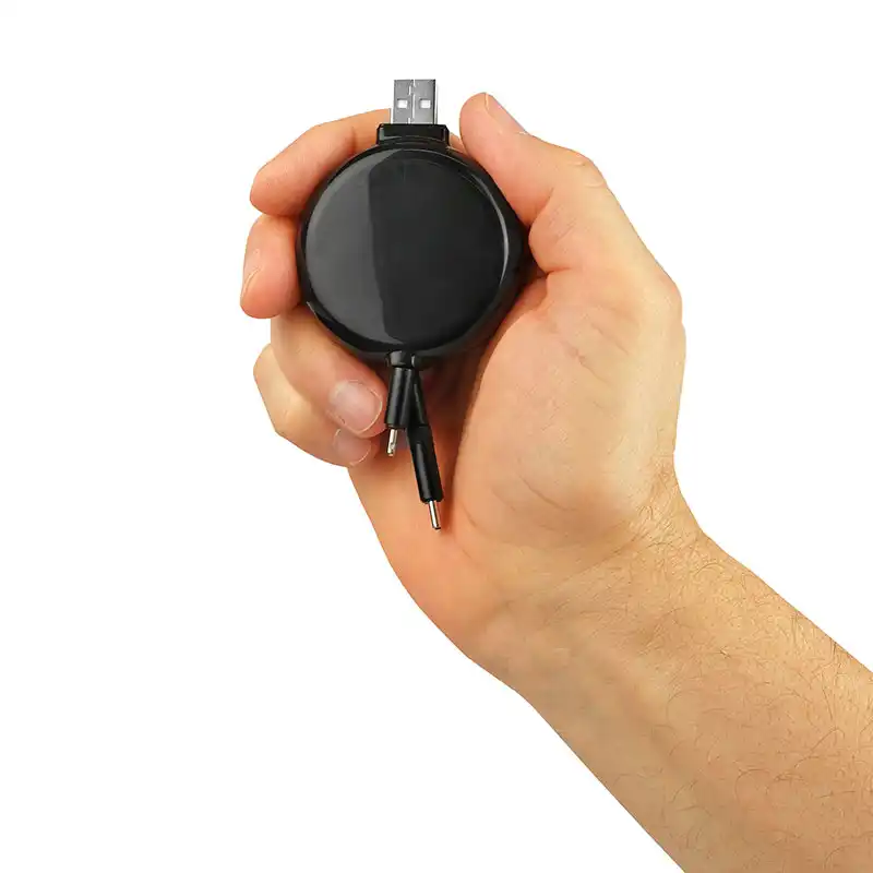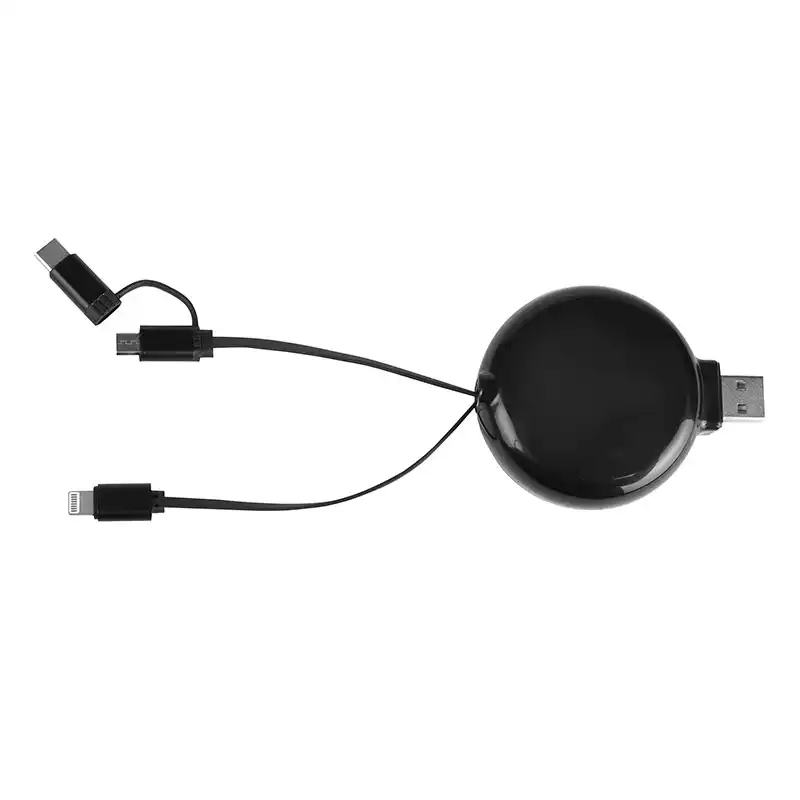 Een veelzijdige 3-in-1-oplossing met geïntegreerde Lightning-, Micro-USB- en USB-C-connectoren op één enkele intrekbare haspel voor maximale compatibiliteit.