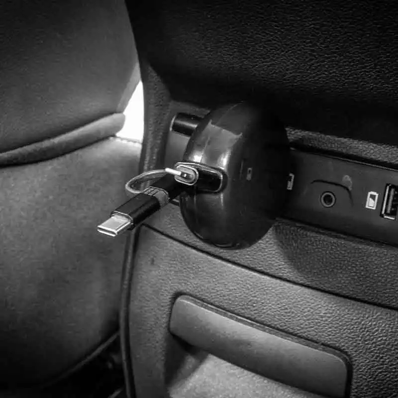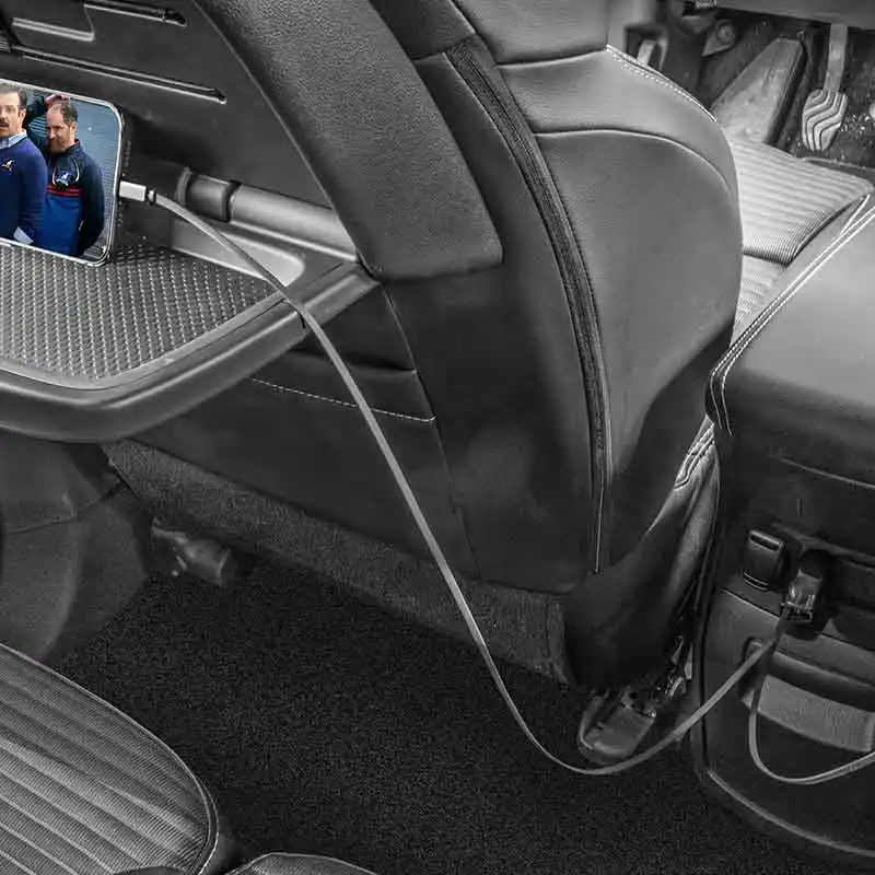 Een royale intrekbare kabel van 80 cm zorgt voor gemakkelijk apparaatgebruik, zelfs vanaf de achterbank van de meeste voertuigen.